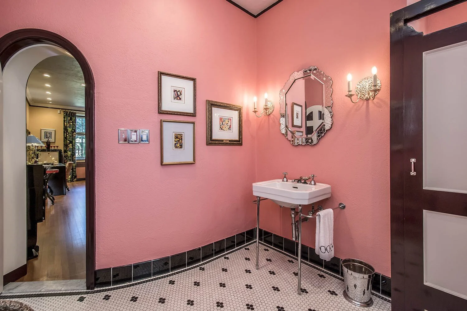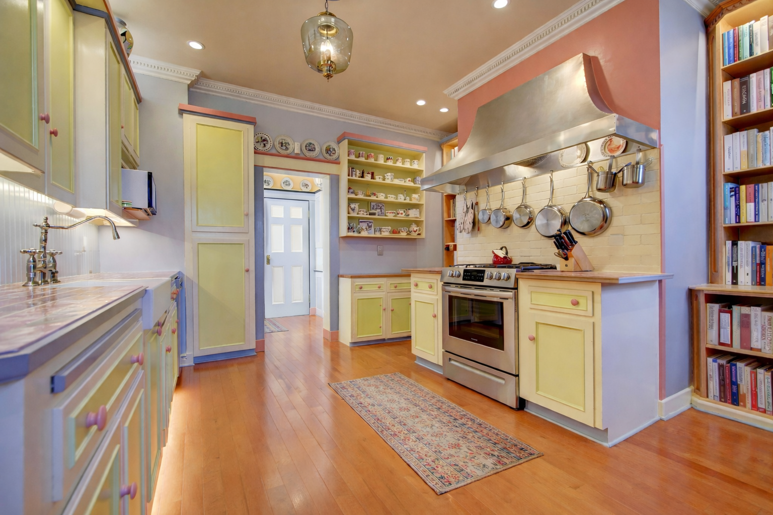 Period details abound, with original slate and oak flooring, panelled oak walls, soapstone windowsills, Perrin and Rowe hardware, detailed trim, and a genuine Thomas Crapper toilet.
