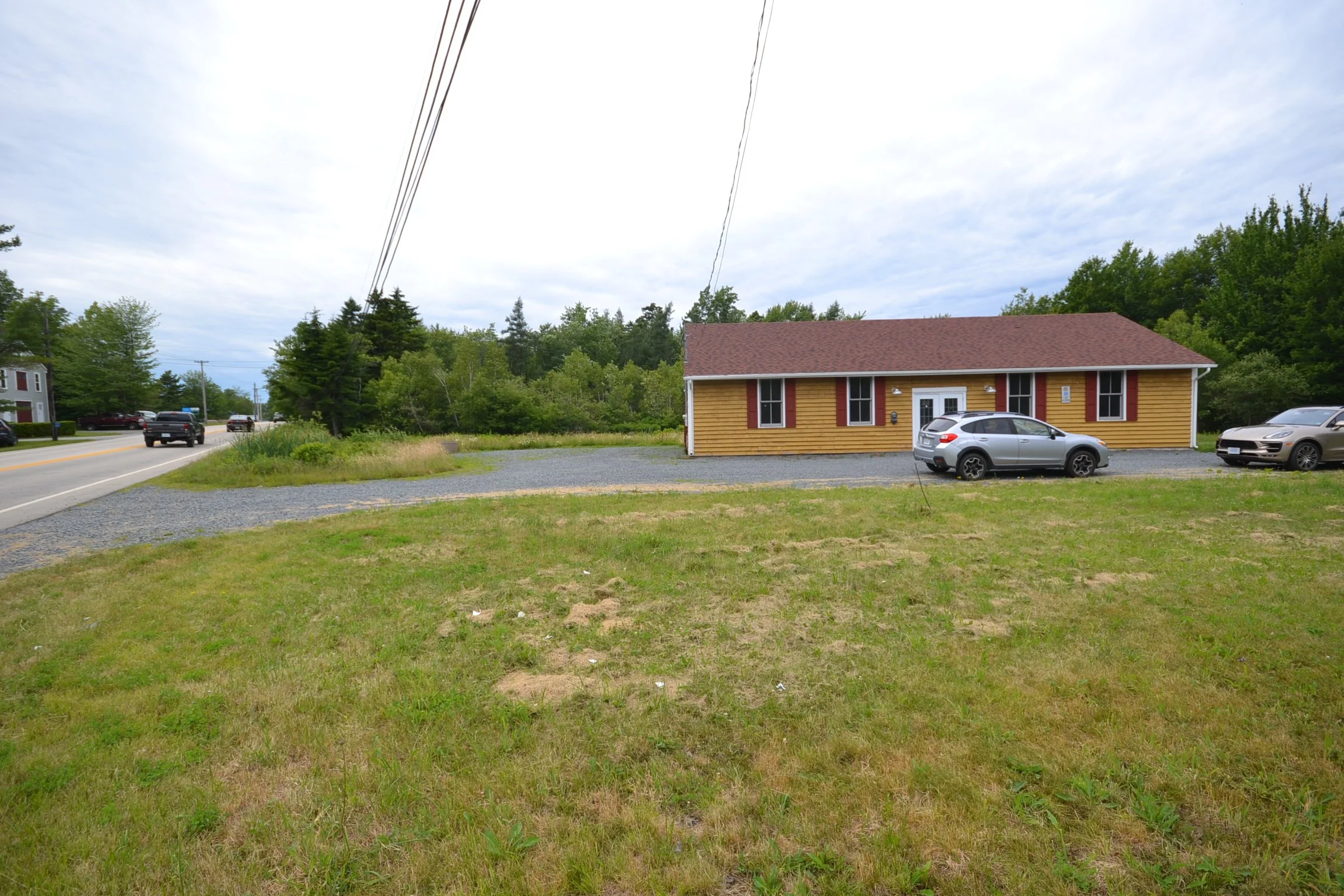 1,985 square foot single storey commercial building on two adjacent lots with a total of 2.65 acres, +/- 400 feet of highway frontage and tons of parking. Conveniently located on Highway 3 about 200 meters outside the Town of Lunenburg, resulting in lower taxes. Excellent visibility and high traffic count. Ideal location for any sort of business. The fully insulated building has a concrete floor, two electrically operated overhead doors, steel security shutters, three ceiling fans, a 30 x 33 foot area with no columns, a 12’7 x 11'8 foot office, a mechanical room and a washroom. Roof shingles were replaced in 2021. There is also a 16'6 x 10'8 foot outbuilding.