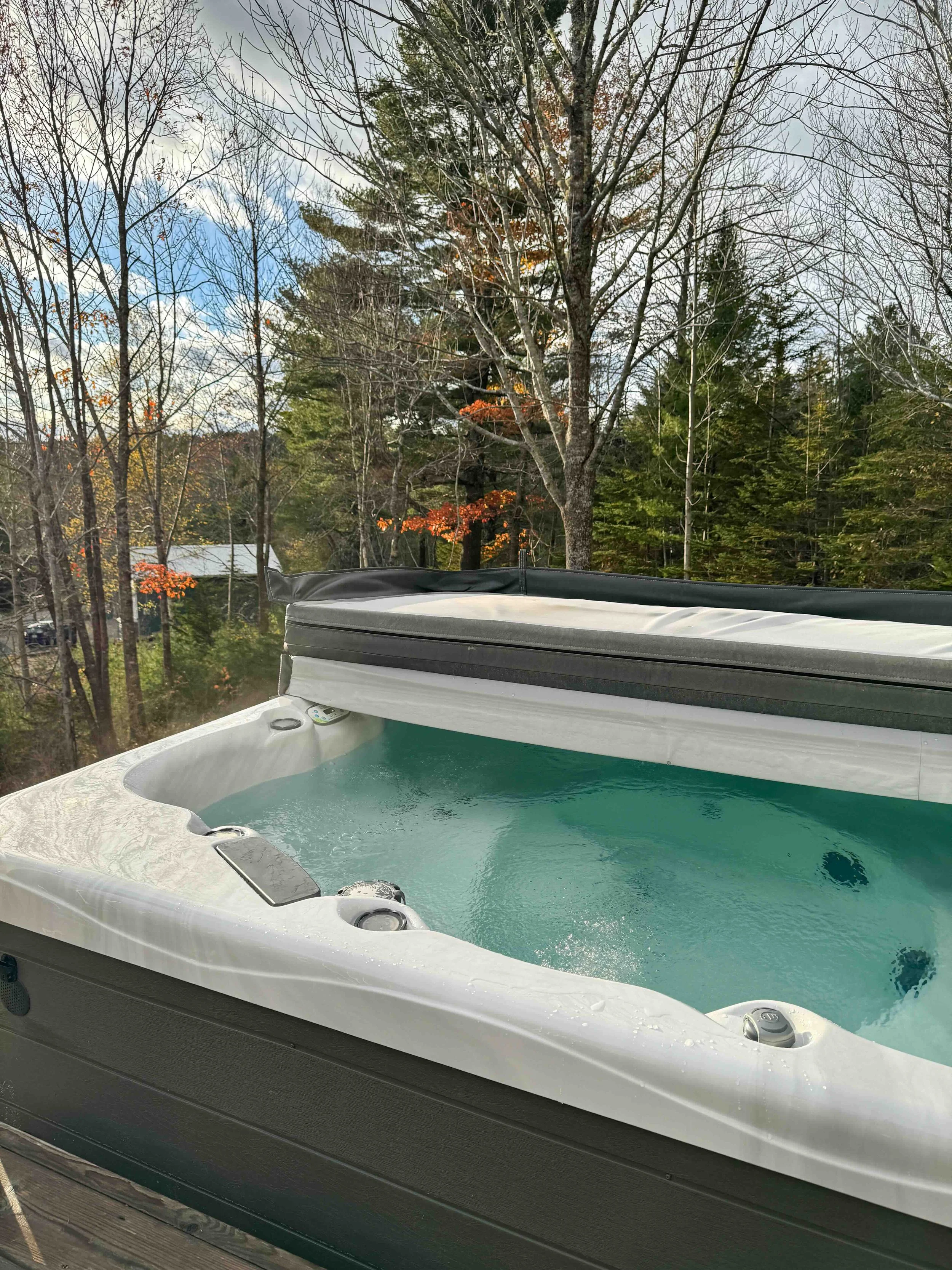 Step outside to enjoy the expansive wrap-around deck, ideal for morning coffee, entertaining, or relaxing in the outdoor hot tub surrounded by nature. The property’s wooded setting provides privacy and tranquillity, making it the perfect place to unwind year-round.